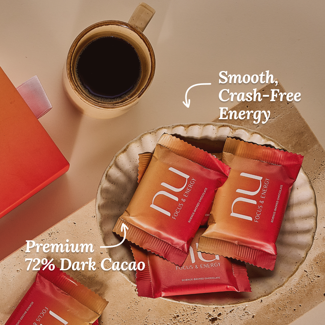 We make dark chocolate supplements powered by adaptogens and research-backed ingredients to help support clearer thinking, better focus, and all-day stamina. Forget pills and powders — the future of brain support is chocolate.